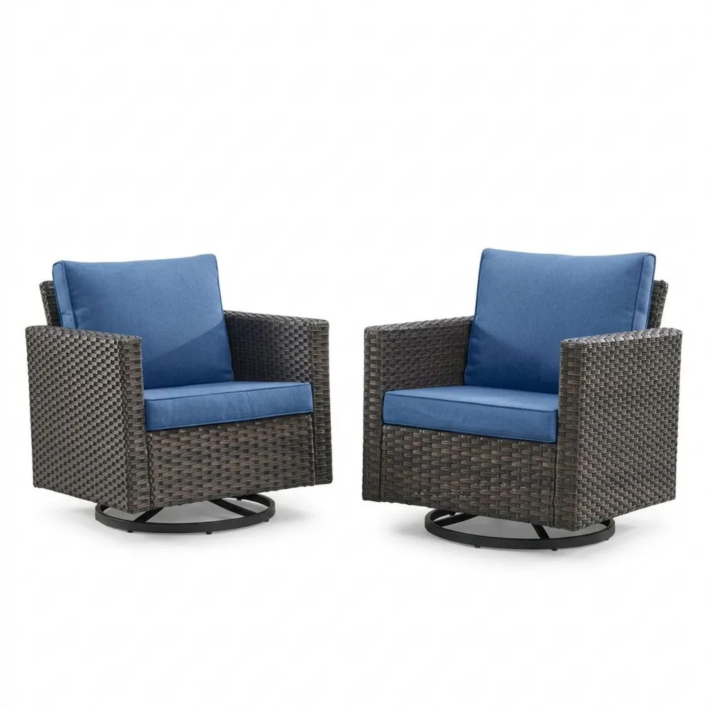 2er Set Garten-Loungesessel aus Polyrattan, blau, mit Kissen und Aluminiumgestell