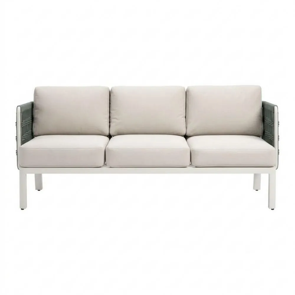 3-Sitzer Gartensofa Aluminium mit Kissen Beige/Grün