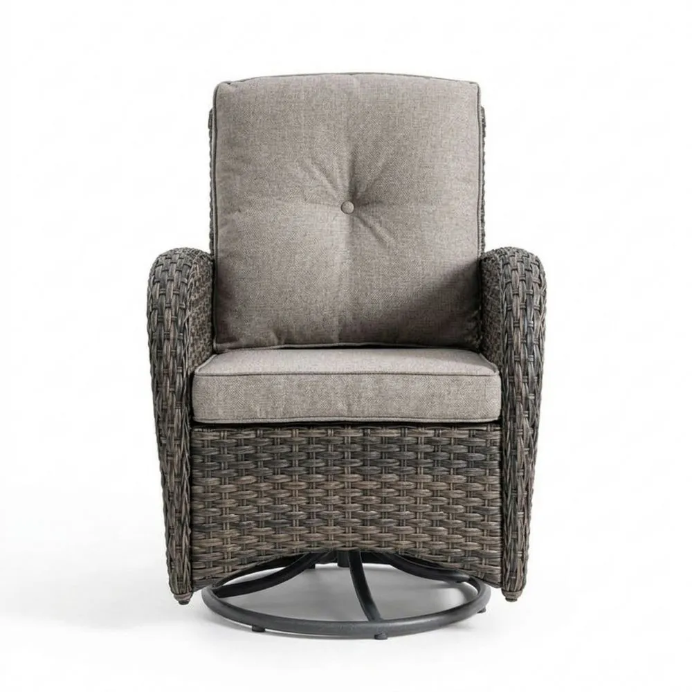 Drehbarer Garten-Loungesessel aus Polyrattan mit grauem Kissen