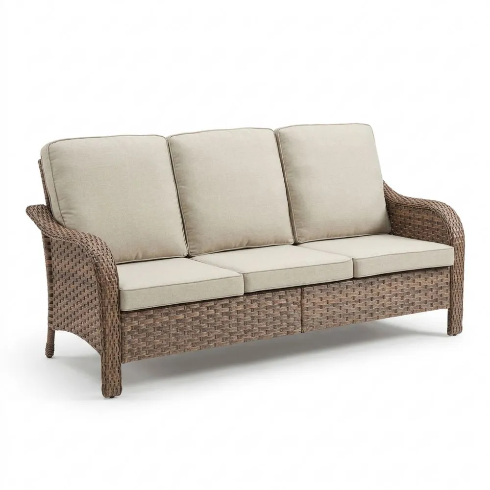 Garten-3-Sitzer-Sofa aus Polyethylen-Rattan mit Kissen, beige