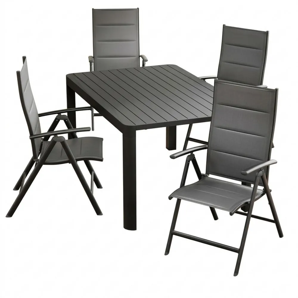 Garten-Esstisch-Set aus Aluminium mit Tisch und 4 Klappstühlen aus Textilene, grau