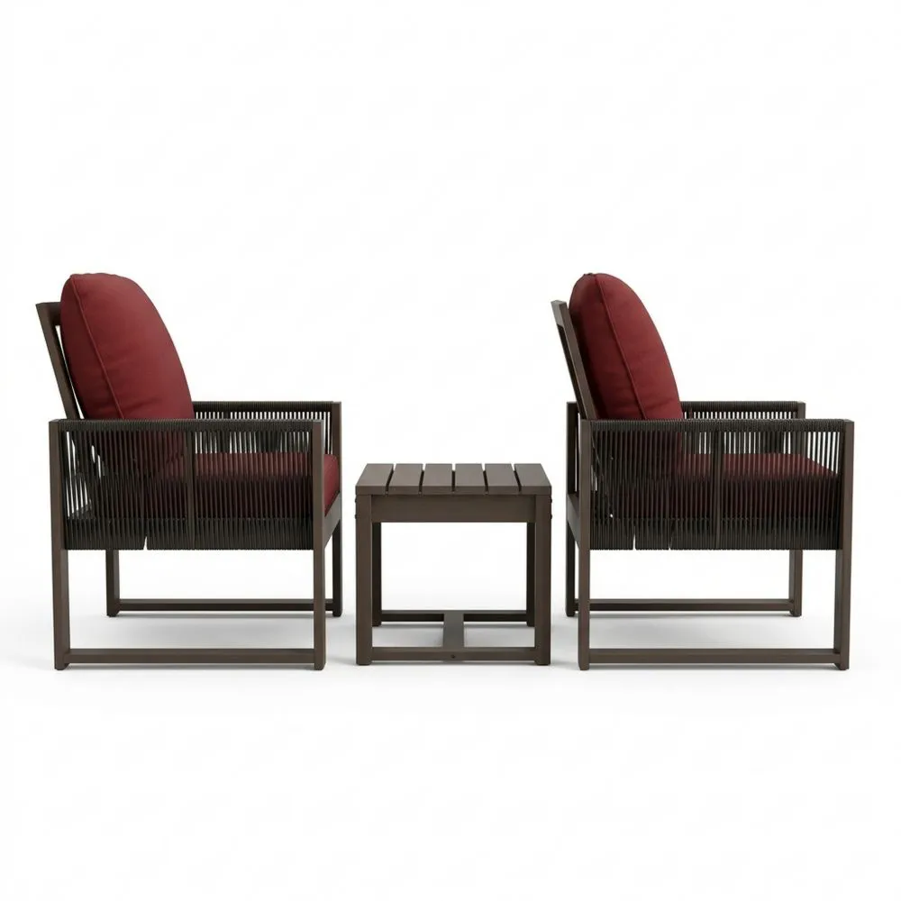 Garten-Loungesessel-Set mit Tisch, Aluminiumrahmen und Polyesterkissen, rot