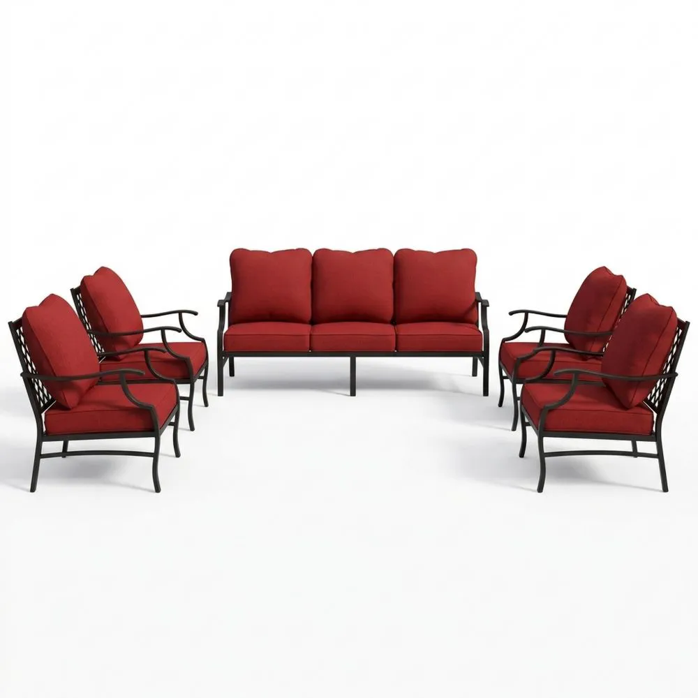 Garten-Sofa-Set aus Aluminium mit roten Polstern