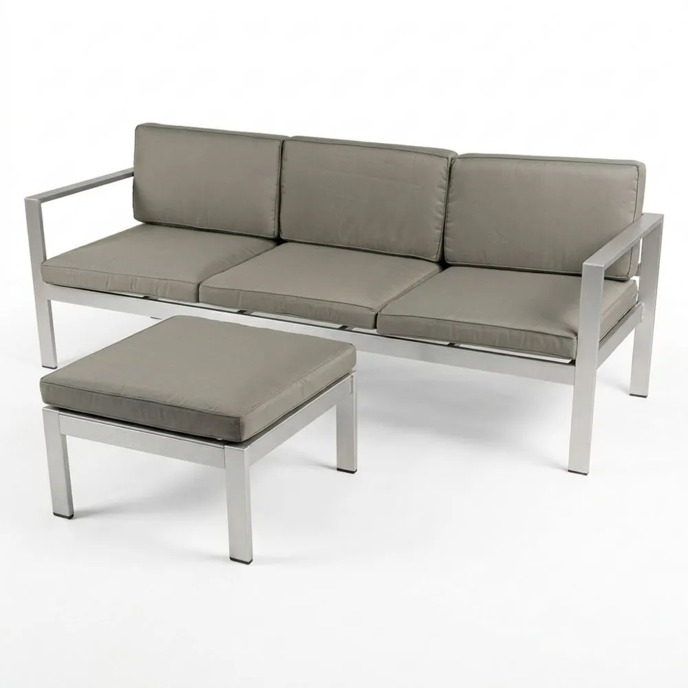 Garten-Sofa-Set aus Edelstahl mit grauen Kissen