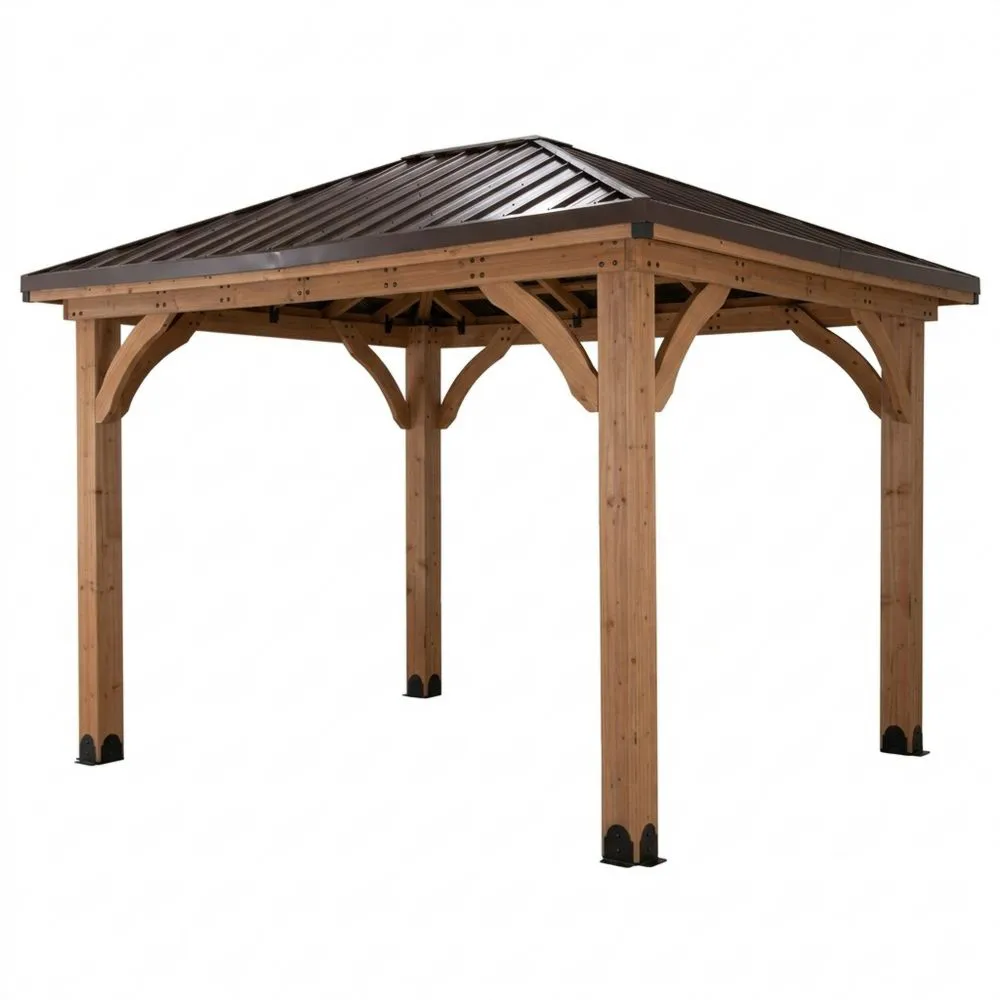 Kiefernholzpavillon mit verzinktem Metallsatteldach, 300x400 cm(L × B)