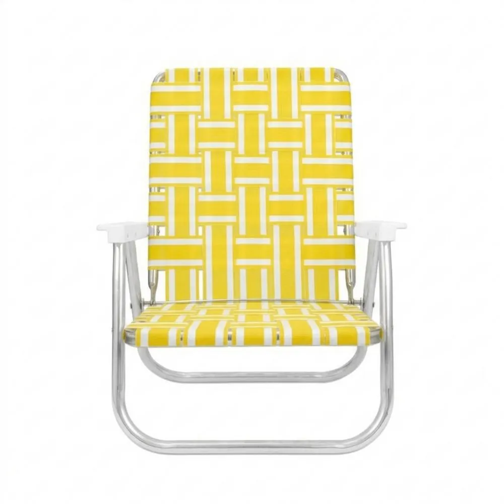 Klappbarer Garten-Loungesessel aus Aluminium mit Gurtgewebe, Gelb/Weiß