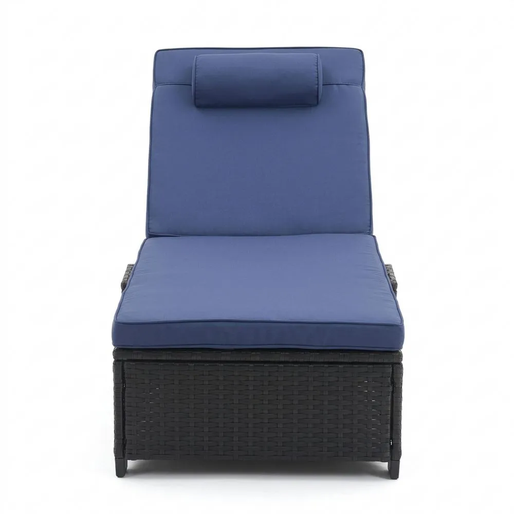 Polyrattan Gartenliege mit blauen Kissen Verstellbar