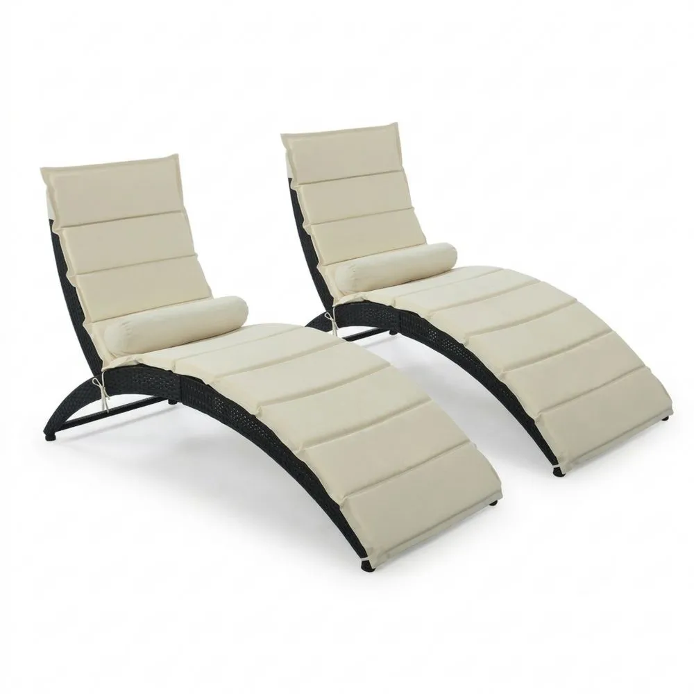 Rattan Sonnenliege Set 2-teilig aus Stahlrahmen Schwarz/Beige