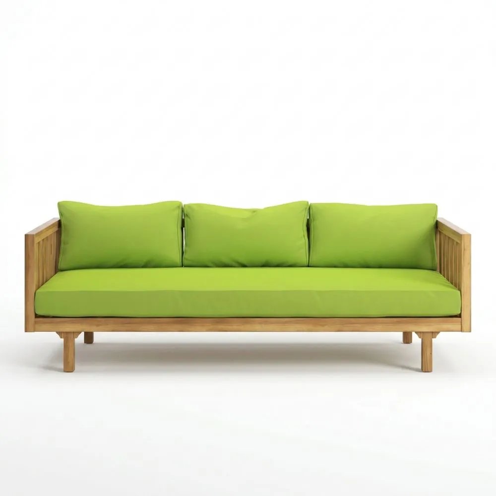Teakholzsofa mit grünen Kissen