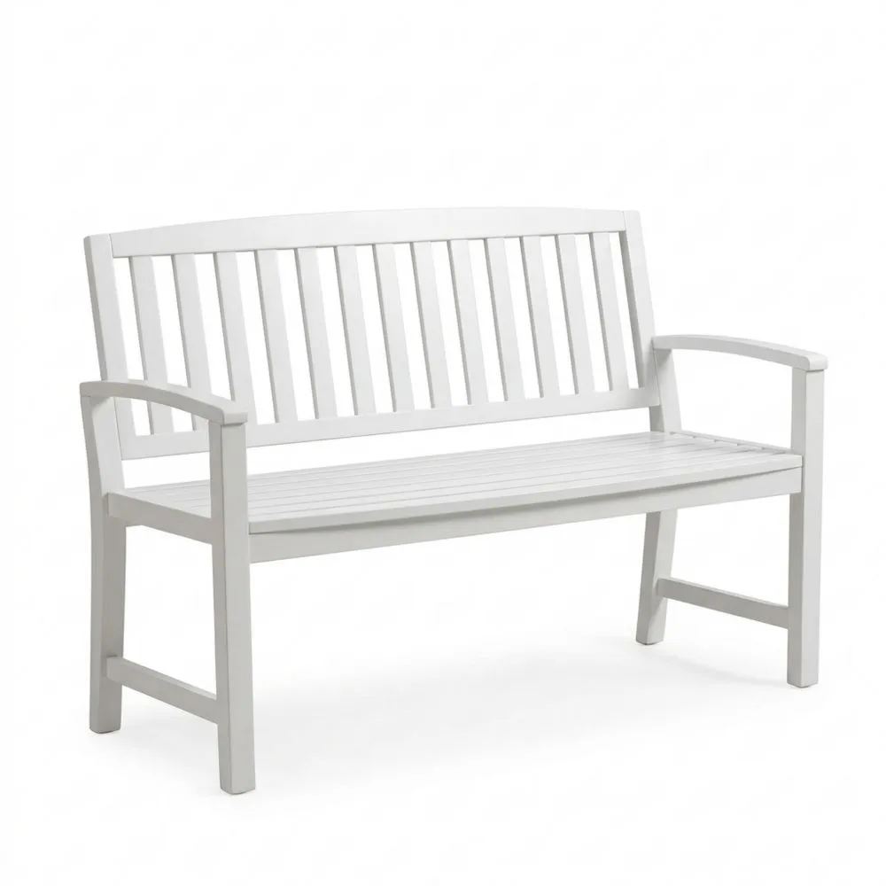 Weiße Gartenbank aus Eukalyptusholz, 120 cm lang